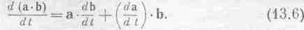 А можно это вывести и быстрей: если а и b – два вектора, зависящих от времени, то производная от a•b равна