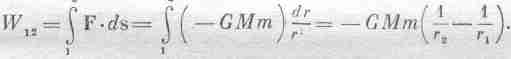 Этот одномерный случай рассматривать легко, потому что мы знаем, что изменение кинетической энергии равно интегралу от начала движения до конца от силы –GMm/r2 по перемещению dr