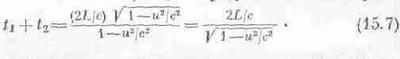 Сравнивая это с (15.5), мы видим, что теперь t1+t2=2t3. Стало быть, если прибор действительно сокращается так, как мы предположили, то становится понятным, почему опыт Майкельсона — Морли никакого эффекта не дал.
