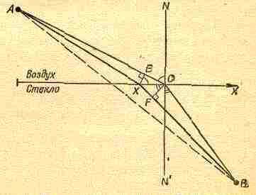 Фиг. 26.4. Иллюстрация принципа Ферма для случая преломления.