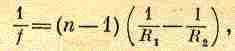 Забудем на время формулу для фокусного расстояния. Если вы купили линзу с неизвестными радиусами кривизны и каким-то показателем преломления, то фокусное расстояние можно просто измерить, собирая в фокус лучи, идущие от удаленного источника. Зная f, удобнее переписать нашу формулу сразу в терминах фокусного расстояния: