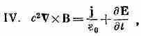 Поскольку магнитных зарядов нет, поток В через любую замкнутую поверхность всегда равен нулю. Второе уравнение СXE=-dB/dt — это закон Фарадея, и обсуждался он в последних двух главах. Он тоже верен в общем случае. Но последнее уравнение содержит нечто новое. Раньше мы встречались только с частью его, которая годится для постоянных токов. В этом случае мы говорили, что ротор В равен j/e0c2, но правильное общее уравнение имеет новый член, который был открыт Максвеллом.