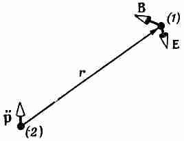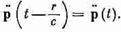найти электрическое поле Е. После утомительных (хоть и прямых) выкладок [при этом нужно помнить, что p(t-r/с) и его производные по времени зависят от х, у и z через запаздывание r/с] мы получаем