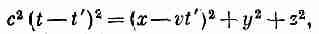 т. е. квадратное уравнение относительно t'. Раскрыв скобки и расположив члены по степеням t', получим