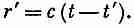 где r' — расстояние от заряда до точки Р в этот запаздывающий момент. В это более раннее время t' заряд был в x=vt', так что