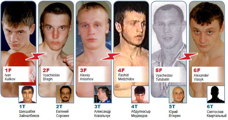 Алексей Анисимов 3F (Владимир, профдебют, тренер Александр Ковальчук 3T) W5 Рашид Меджидов 4F (Махачкала, профдебют, тренер Абдулнасыр Меджидов 4T).