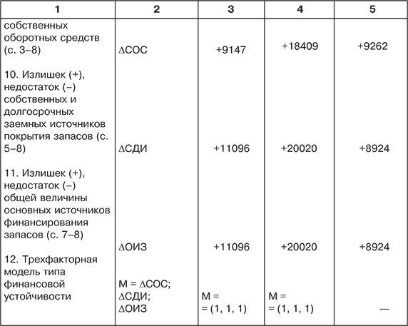 3) превышение общей величины основных источников финансирования запасов над абсолютной суммой самих запасов на начало отчетного года было равно 3,1 раза (11 096/3555), а на конец отчетного периода 3,5 раза (20 020/5789);