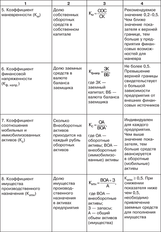 Финансовая устойчивость предприятия характеризуется состоянием собственных и заемных средств и оценивается с помощью системы финансовых коэффициентов. Информационной базой для их расчета являются статьи актива и пассива бухгалтерского баланса.