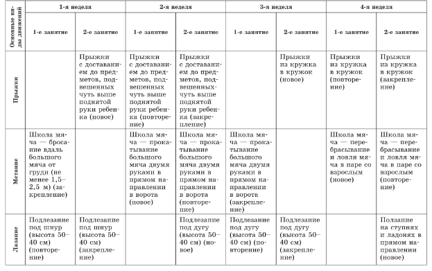 Учить ходьбе с высоким подниманием колен и вытянутыми вперед руками; с опорой на ладони и стопы; ходьбе c перешагиванием через рейки лестницы, положенной на пол; развивать координацию движений; продолжать учить ходьбе на пятках, кисти рук приставлены к голове; бегать стайкой за инструктором; повторить ползание на ладонях и коленях по скамейке; закрепить прокатывание мяча друг другу сидя.