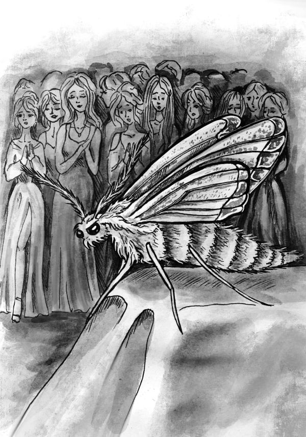Татьяна с ужасом заметила, что стены раздвинулись, исчезли стулья, а по периметру внутреннего пространства появились барабаны, по которым застучали палочки, управляемые невидимой рукой. На поверхности стола, ещё минуту назад совершенно пустого, появилась знакомая салфетка, а следом взмахнула крыльями Морфо. Она открыла ужасающую пасть, исторгая оглушающий вопль. Татуировка на руке Татьяны загорелась огнём, вырывая из груди девушки отрывистый крик. И в ту же секунду журналистка взлетела настоящей бабочкой, повинуясь инстинктам, она понеслась к приоткрытой двери, но Белана с другими адептками не дали вырваться, загоняя обратно в центр. Барабаны неистовствовали, Морфо развернулась и приготовилась нападать. В такт барабанам стали бить в ладоши свободные девушки. Бражник, загнанный в угол, заметался, уворачиваясь от острых зубов. Морфо настигала. Бражник метнулся в противоположную сторону и вдруг резко полетел к барабанам, нырнул под одну палочку, сделал пируэт вокруг второй, нырнул под соседнюю справа… Великой Морфо повезло меньше: пытаясь догнать ускользающую жертву, она не успела увернуться и одним точным и сильным ударом, пришедшимся на её маленькую головку, оказалась размазанной по кожистой поверхности инструмента. Раздался треск. По рядам прокатилась волна отчаяния.