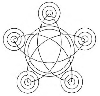 Из фигур, представленных в задачах 1-10, безусловно, можно начертить непрерывной линией фигуры из задач 2, 4, 5, 7-10. В этих фигурах во всех точках пересечения сходится четное число линий, следовательно, каждая точка может быть начальной, она же будет и конечной. Выполнение фигур показано на рис. 10–18.