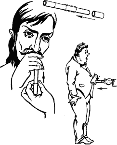 И вот что я им показал: достаю свою «волшебную» палочку и молниеносно, уверенно исполняю фокус на близком расстоянии. Мои зрители были поражены, когда я заставил свою палочку исчезнуть наполовину у себя в носу, а потом и в ухе. Сначала я приложил один конец палочки к своему носу так, чтобы белая часть была спрятана под пальцами. А второй, белый конец, был хорошо виден моим зрителям, ну а потом поднял его вверх, то есть впихнул в ноздрю: в полном и переносном смысле этого слова. Затем преспокойненько извлек из своего заколдованного носа магическую палочку. Вуаля!