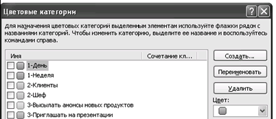 Эти категории, не такие общие, как «Клиенты» или «По ставщики», нацелены на поиск людей, которые вам интересны в связи с какими-то событиями, проектами, процессами. Если вы решите создавать такие категории, обязательно нужно отделить их от основного списка. Как вы помните, категории оперативного планирования мы начинали с единицы («1-День», «1-Неделя»), контекстные категории – с двойки («2-Шеф», «2-Клиенты»), соответственно, специальные категории контактов можно начать с тройки («3-Пригла-шать на презентации», «3-Высылать анонсы новых продуктов»). Поскольку в любых списках категории всегда располагаются по алфавиту, мы никогда их не перепутаем.