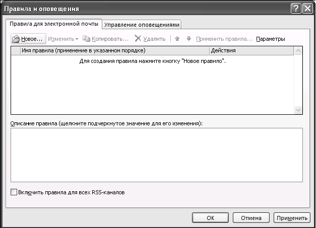 1. Зайдите в меню Сервис / Правила и оповещения. В открывшемся окне щелкните на кнопку «Новое» в левом верхнем углу.