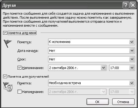 (В Outlook 2003 письмо, помеченное «К исполнению», не появляется в задачах. Но в списке папок есть специальная папка «К исполнению», в которой все они видны.)