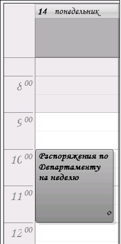 В Outlook такие события изображаются горизонтальными полосами в верхней части календаря. Например, «Масленица в Петергофе» у Евгения Онегина. Не перепутаешь с жестко запланированными делами, но и не забудешь.