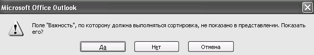 9. В появившемся окне «Сортировка» выберите «Важность – по убыванию», затем «Тема – по возрастанию». Нажмите «ОК». На появившийся вопрос «Поле «Важность» отсутствует в представлении, добавить его?» ответьте «Да».