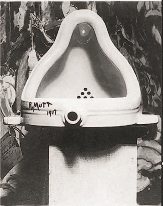 Предшественники концептуальных произведений 1960-х и 1970-х годов были созданы в начале ХХ века французским художником Марселем Дюшаном (1887–1968). В 1917 году отец концептуального искусства, как его часто называют, представил на выставку Общества независимых художников в Нью-Йорке писсуар фабричного производства на том основании, что любая вещь, которую художник назначает произведением искусства, становится таковым. Трудозатраты самого Дюшана оказались минимальны: он просто придал писсуару горизонтальное положение вместо функционального вертикального и подписал его вымышленным именем: «Р. Матт, 1917» (игра слов, связанная с именем производителя и популярным тогда комиксом «Матт и Джефф») и дал ему название – «Фонтан». Сегодня сохранились лишь фотографии того «Фонтана», сделанные Альфредом Стиглицем (1864–1946) в его нью-йоркской галерее «291» через семь дней после того, как жюри выставки отвергло этот экспонат [11]. (С тех пор появились многочисленные копии этой скульптуры, и они еще сильнее поставили под вопрос саму идею «оригинального» произведения искусства, которую Дюшан и хотел оспорить.) Непритязательность и конфликтная суть как основные свойства «Фонтана» отчетливо видны на фотографии Стиглица, равно как и мистический символизм этой работы, его формальная связь с фигурой Мадонны или сидящего Будды, которую фотограф подчеркнул с помощью композиции.