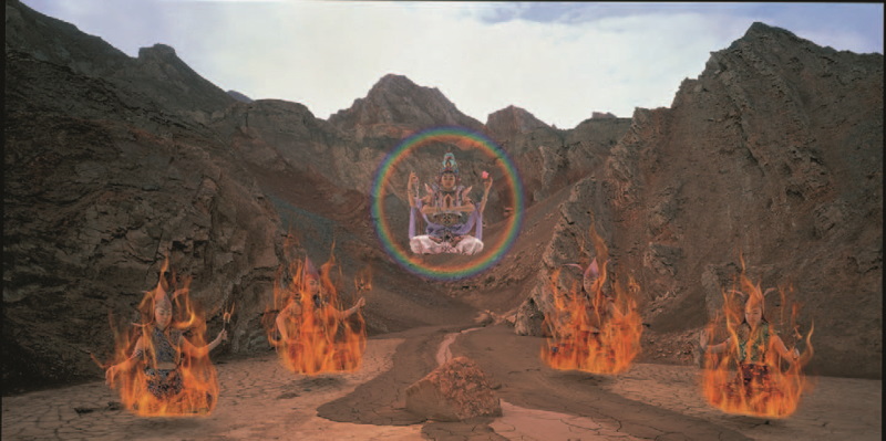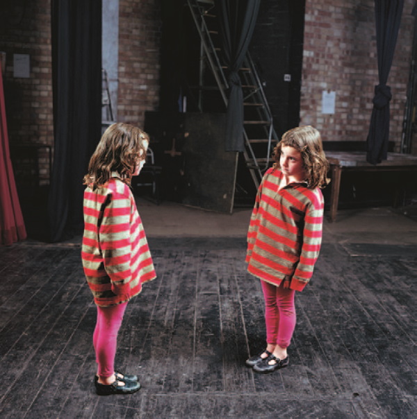 Работа Венди Макмёрдо (род. 1962) «Элен, за кулисами, театр Мерлина (взгляд)» [57], где с помощью цифровой обработки показана девочка и ее двойник, является примером «живой фотокартины», в которой постановочный элемент выявляется сразу. Девочки удивленно смотрят на своих двойников на театральной