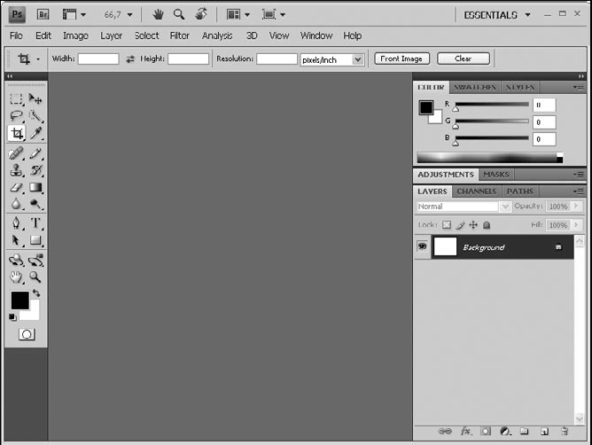 Первый взгляд на рабочее окно программы Photoshop (см. рис. 2.1) заставит запаниковать любого начинающего пользователя. Может возникнуть ощущение, будто вы забрались в кабину самолета и глаза разбегаются от многочисленных приборов управления. Но ничего, это только на первый взгляд. Скоро мы узнаем, что не все так страшно, познакомимся со всеми этими инструментами, поймем логику их расположения, узнаем, как их убирать с глаз долой (чтобы не пугали) и как возвращать обратно.