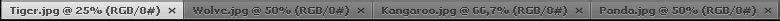Появление вкладок – одно из самых заметных и удобных нововведений Photoshop CS4. Вкладки представляют собой небольшие кнопочки, расположенные над рабочей областью (рис. 4.30). На них выведена информация о названии файла и его расширении, масштабе просмотра и цветовой модели.
