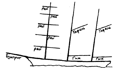 А вот эти поперечины на мачтах — РЕИ. Кстати, в единственном числе правильнее говорить «рей», а не «рея».