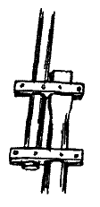К мачте — обычно спереди — крепится ее вторая часть — СТЕНЬГА. Как это выглядит, вы уже нарисовали. Наложили два ствола друг на друга, свинтили обоймами. И вот стеньга возвышается над мачтой. Она потоньше и полегче мачты. Все части чем выше, тем заметнее уменьшаются в размерах. Тяжесть должна оставаться внизу, чтобы корабль не перевернулся…