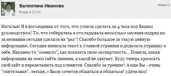Сегодня в письме отвечала заказчику и вспомнила рекомендации Натальи по речевым алгоритмам. Переписала свой ответ снова. В результате получила от заказчика одну строчку: «Работа с возражениями проведена на 100 %:)»