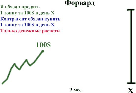 Фермер приходит на биржу и продает зерно за 150 долл. Но теперь, контрагент приходит к фермеру и говорит: «Ты обязался мне продать за 100 долл., а текущая цена 150 долл.». Значит, в этом случае фермер должен возместить разницу контрагенту (рис. 1.5).