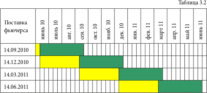 В табл. 3.3 приведен график работы биржи ФОРТС. Предположим, у нас есть фьючерс с поставкой 14 сентября и сегодняшняя дата тоже 14 сентября – в какой момент времени произойдет поставка фьючерса? Поставка фьючерсного контракта произойдет в 18.45, перед вечерним клирингом.