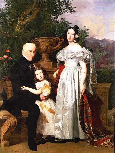 Представленное полотно демонстрирует талант Вальдмюллера-портретиста и служит образцом стиля бидер-мейер. Семейство в парадных нарядах изображено на фоне живописного горного пейзажа. Пышная зелень, розы, изысканная скульптурная ваза, богато орнаментированная дорогая драпировка в руках женщины — все эти детали должны были удовлетворить вкус заказчика и стать украшением гостиной. Портретные черты идеализированы для отображения моральных качеств героев: умудренный опытом отец семейства, нежная миловидная дочь и любящая красавица-мать с прической по тогдашней моде.