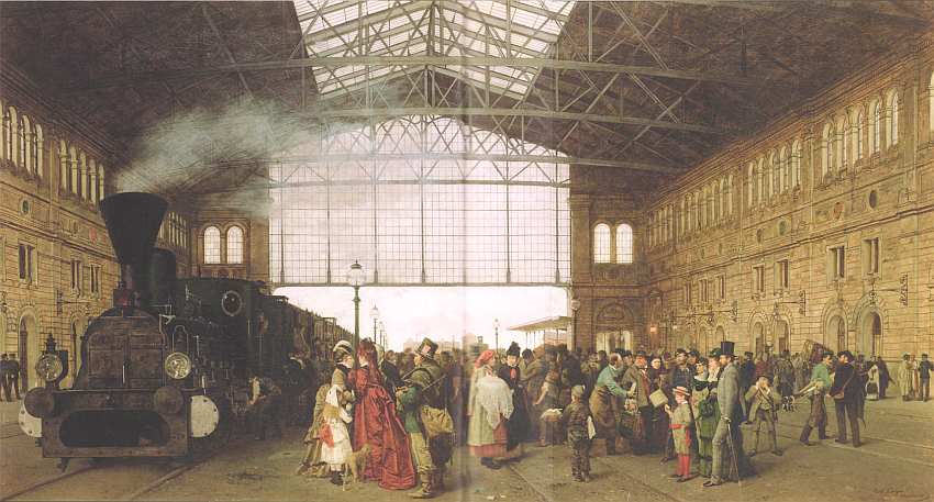 Карл Каргер — знаменитый художник, всю жизнь проживший в Вене и ставший бытописателем жизни австрийского общества. Во время путешествия по Италии в 1871 Каргер был покорен венецианской жанровой живописью, главными героями которой являлись простые люди. После возвращения на родину художник взялся создавать картины со сценами будней венских вокзалов. Эта картина — одна из целой череды полотен, раскрывающих быт и нравы жителей Вены того времени.
