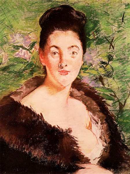 Эдуард Мане — знаковый художник, определивший пути развития европейского искусства конца XIX — начала XX века. Авторская манера Мане шла от классического французского реализма XIX века до импрессионизма. Произведения мастера отличаются виртуозной техникой исполнения. При кажущейся простоте его работы требуют вдумчивого анализа. В этой картине, например, Мане создает очень эффектный задний фон, который словно вырастает из фигуры позирующей дамы, или же, наоборот, она словно рождается из орнаментальных линий задника. В работе отчетливо видно влияние на автора японской гравюры: плоскостность как будто ломается об трехмерный объект. Таким образом, перед зрителем не только достаточно фривольный по своему характеру