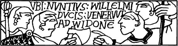 В замке были собраны, в честь знаменитого гостя, самые влиятельные вельможи Нормандии: Гуго де-Монфор, Рожер де-Бомон, поседевшие в битвах советники герцога; Анри де-Феррер, прозванный так благодаря его замечательным оружейным заводам; Рауль де-Танкарвиль, бывший наставник герцога; Жоффруа де Мандевиль, Тости Прекрасный, имя которого выдавало его датское происхождение; присутствовали еще Гуго де-Гранмениль, недавно вернувшийся из изгнания, Гюмфрей де-Боген, Люци и д'Энкур, владевшие громадным количеством земель; были, наконец, Вильгельм де-Монфише, Роже Бигот, Рожер де-Мортимер и множество других именитых людей. Кроме того, Гарольд увидел всех ученых прелатов и епископов, в их числе Одо, брата Вильгельма, и Ланфранк. Другим рыцарям и предводителям, тоже захотевшим полюбоваться на Гарольда, почти не было места в замке, несмотря на его обширность.