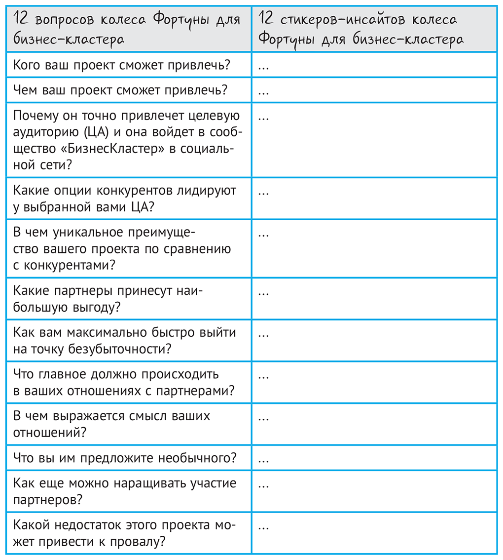 • Все ответы интегрированы в логическую цепочку из 12 стикеров, построились в кружок и готовы запуститься. Чем не “Колесо Фортуны”? Закрутим в нужном направлении – каждое звено определит инерцию движения для последующего звена.