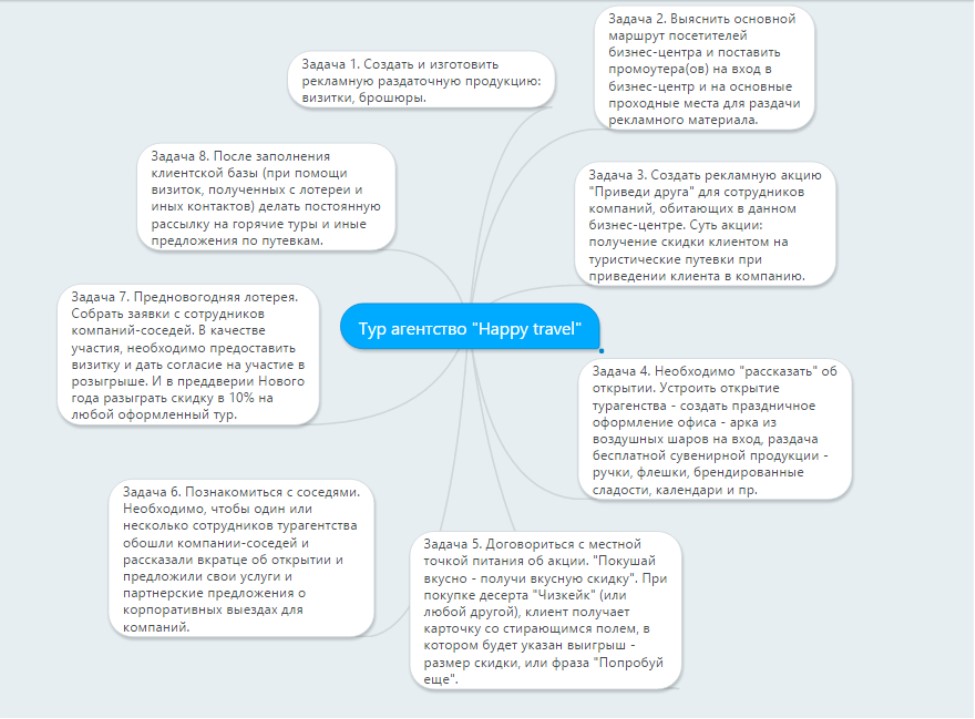Кейс: Ваше турагентство находится в бизнес центре, где помимо него ещё 200 компаний. Задача – превратить 200 компаний в своих клиентов. Бюджет ограничен (примерно 50 000 рублей).
