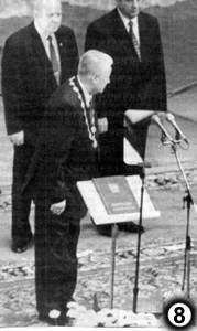 Что же в них удивительного? Во-первых, с 1995 года и по нынешний день ряд газет, в том числе правительственное издание “Российские вести”, для сопровождения информации о текущей деятельности объекта использует архивные фотоснимки вперемешку со “свежими” кадрами. В качестве примера можно привести, скажем, “фото” с инаугурации 1996 года (“Аргументы и факты”, N37, 1996), где изображен Ельцин, дающий клятву соблюдать… Конституцию РСФСР. Исходный снимок - в журнале “Огонек”, N 32, 1996. В “АиФ” только отрезали флаг РСФСР, чтобы подлог не был совсем очевиден. Среди публикуемых кадров этот принцип реализован фотографией N1 (далее - Ф1), как минимум, дважды опубликованной разными изданиями (см. список в конце статьи). Что это такое? Банальная нехватка оперативных фотоматериалов даже в правительственном издании? Или что-то еще?