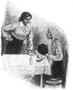 Красная и смущенная, m-lle Эми безнадежными глазами смотрит на Мурочку.