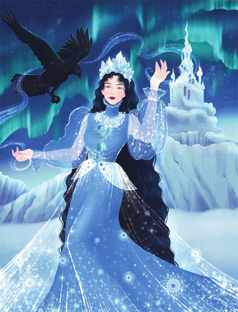 За спиной Марены летит чёрный ворон. В гнезде его хранятся золото и серебро, сияющие самоцветные камни. Но боятся люди вещую птицу – на крыльях переносит она бури и несчастья, крик её предсказывает смерть. Боятся они и хозяйку ворона Марену. Потому с наступлением темноты покрепче запирают окна и двери.