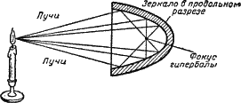 Лучи света, падая на внутреннюю поверхность гиперболического зеркала, сходятся все в одной точке, в фокусе гиперболы. Это известно. Теперь вот что неизвестно: я помещаю в фокусе гиперболического зеркала вторую гиперболу (очерченную, так сказать, навыворот) — гиперболоид вращения, выточенный из тугоплавкого, идеально полирующегося минерала — шамонита (В), — залежи его на севере России неисчерпаемы. Что же получается с лучами?