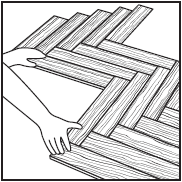 При укладке для надежности соединения панелей необходимо правильно выбрать взаимное расположение из коротких и длинных сторон. Укладку панелей необходимо вести в шахматном порядке с расстоянием между торцовыми замками не менее 400 мм.
