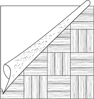 Мозаичный паркет является заменителем штучного паркета и изготавливается в виде отдельных ковриков. Этот вид паркета имеет основание из биостойкого эластичного материала с закрепленными на нем двухслойными планками. Основной слой такой планки изготавливается из прессованных древесных отходов, и только лицевая часть на 6-8 мм – из твердой ценной древесины. Коврики покрываются лаком и обклеиваются сверху защитной бумагой или пленкой (рис. 10).