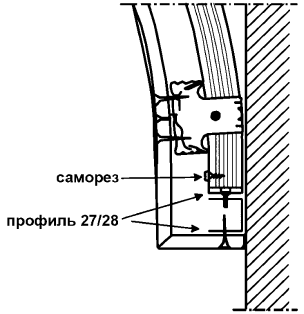 Главные проблемы возникают при монтаже стыков криволинейного потолка со стенами (рис. 38). Концы арочного перекрытия должны опираться на конструкцию из направляющих профилей шириной 27 мм и высотой 28 мм, причем обязательной является проклейка «подошвы» профиля, прикрепляемого к стене дюбель-гвоздями, самоклеящейся полиуретановой или пенорезиновой лентой-уплотнителем.