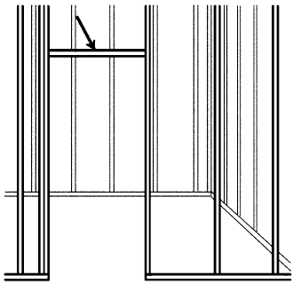 Жесткость перегородки с дверным проемом в этом случае будет обеспечена при надежном соединении стоечных и направляющих профилей, которые, в свою очередь, должны быть закреплены к перекрытию дюбелями вблизи проема (на расстоянии не более 10 см от него). Стоечные профили над дверным проемом должны быть развязаны ригелем, увеличивающим жесткость всей конструкции дверной коробки (рис. 47).