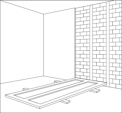 Маяки-направляющие из гипсового раствора накладываем на поверхность стены в одной плоскости, предварительно забив в углах стены сверху и снизу гвозди с выступанием над поверхностью на 3 см, а по ним по горизонтали, вертикали и диагоналям натягиваем шнуры на расстоянии 18 мм от поверхности стены. Первый гвоздь под маяк вбивается в верхнюю часть стены на расстоянии 350–400 мм от потолка и угла. Его высота над поверхностью стены не должна быть больше глубины воздушной прослойки между стеной и гипсокартонным листом. К шляпке вбитого гвоздя подвешиваем отвес, следя, чтобы прослойка не оказалась меньше высоты самого большого выступа на стене. Следующий гвоздь вбиваем на расстоянии 250 мм от пола – так, чтобы шляпка касалась шнура. А уже затем – промежуточные гвозди.