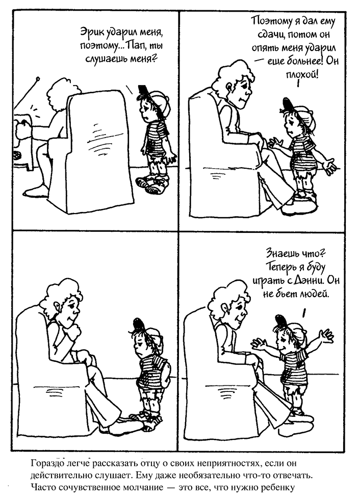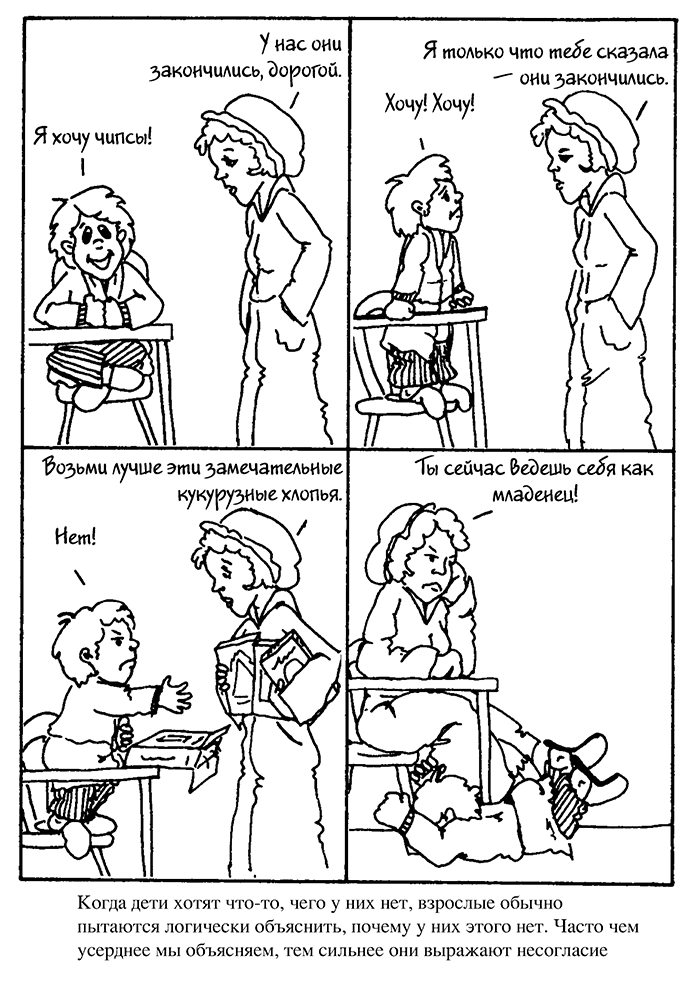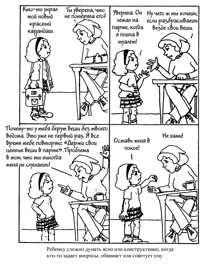 Далее, на рисунках, вы увидите контраст между этими приемами и тем, как обычно люди отвечают детям, если у них проблемы.
