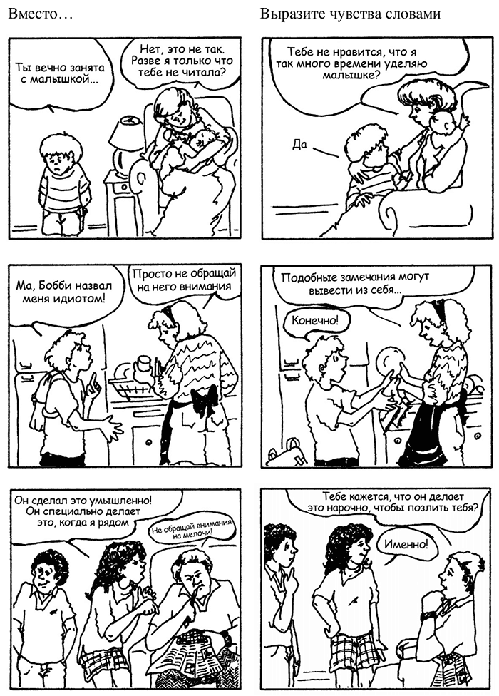 – Может быть, когда сын жалуется мне на то, что бабушка проводит слишком много времени с малышом, нужно сказать что-то вроде: «Тебе хотелось бы, чтобы она больше внимания уделяла тебе…»