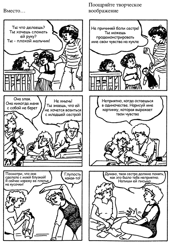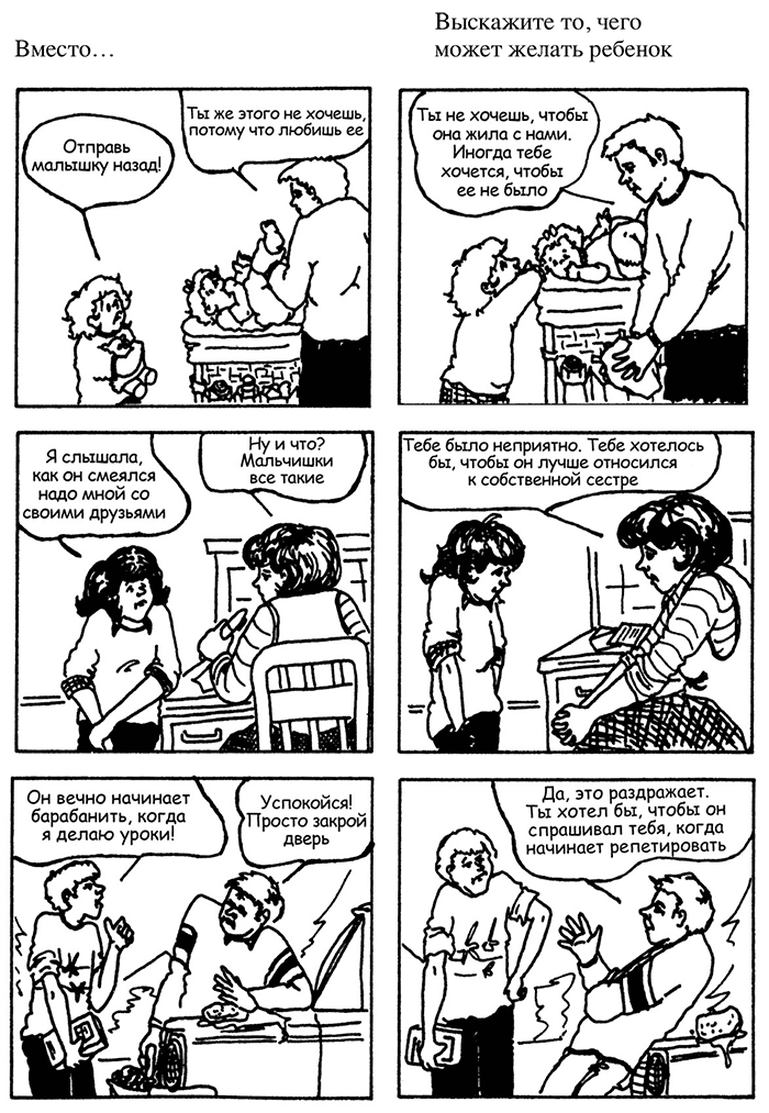 А как быть, если ребенок постоянно твердит, что ненавидит своего брата? На слова: «Я слышу, что ты его ненавидишь», он кричит в ответ: «Да, я его ненавижу!» Я говорю: «Похоже, ты действительно его ненавидишь», а он вопит: «Именно! Я его ненавижу!» И мы остаемся ни с чем.