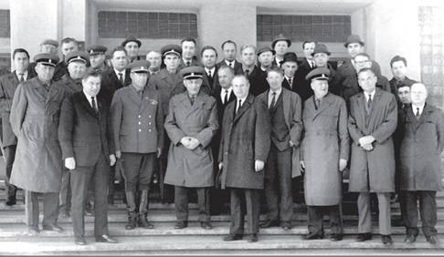 На Военно-технический Совет Министерства обороны. Слева-направо: директор ВНИИ Стали М.И. Маресев, заведующий отделом ВПК О.К. Кузьмин, заместитель Министра обороны В.М. Шабанов