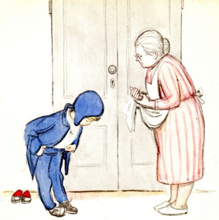 — Котя, подожди! На улице сыро. Ты хочешь простудиться? Посмотри на себя. Всё ли ты надел?